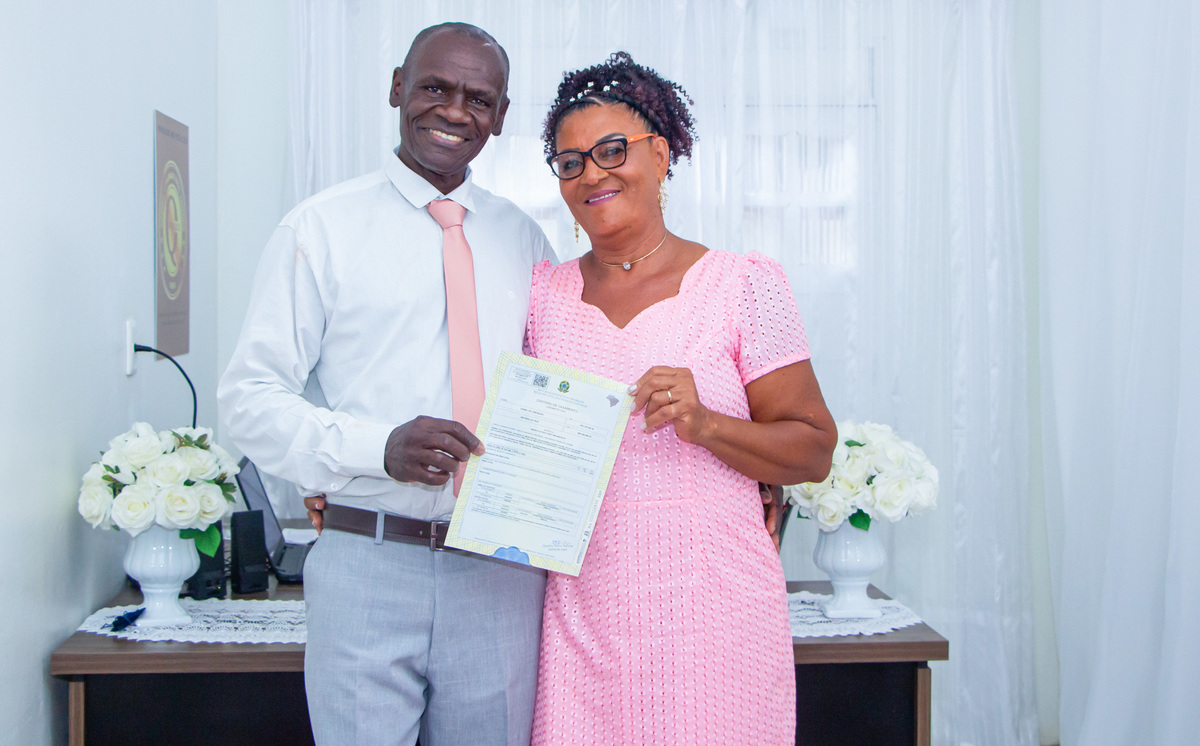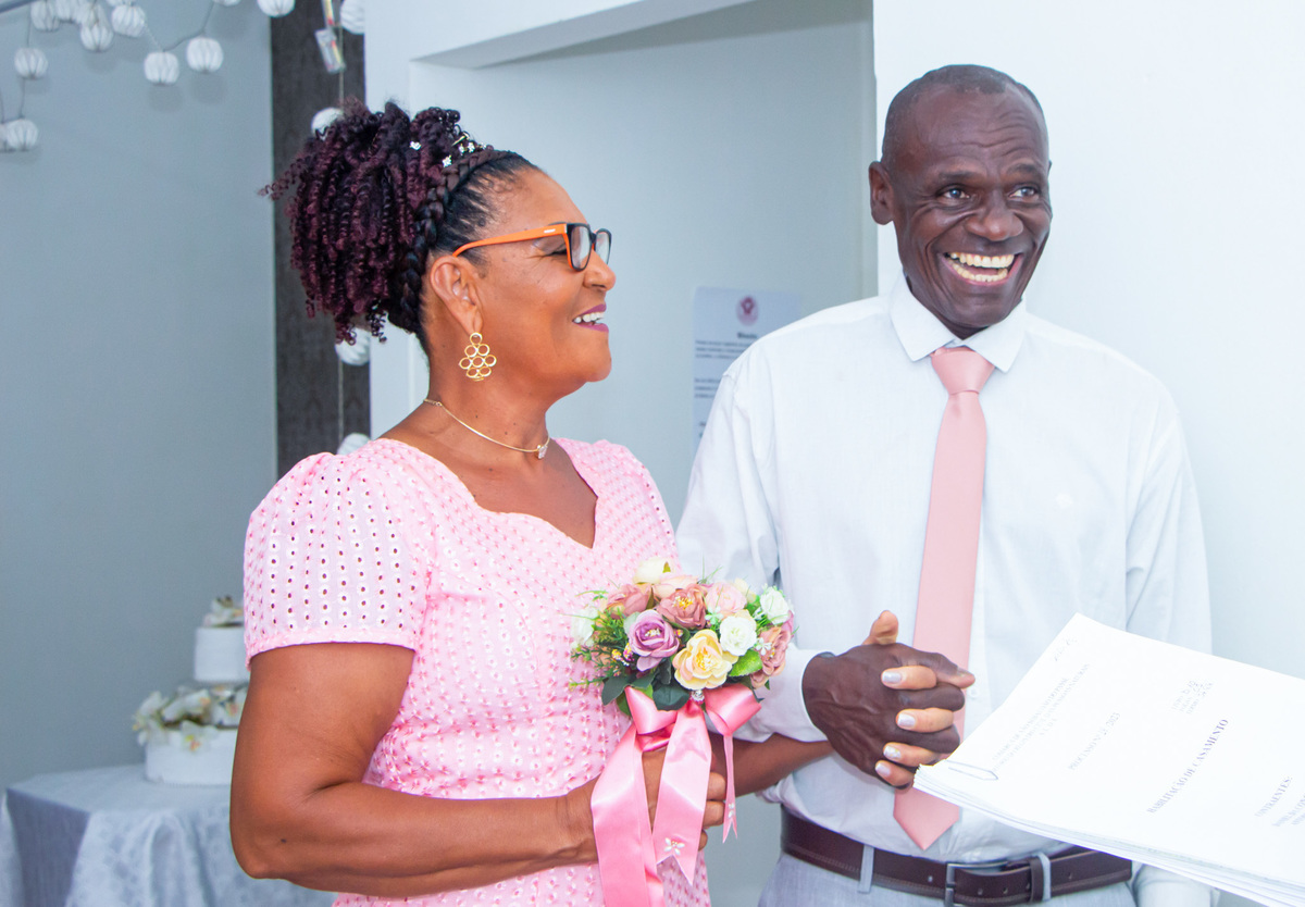Fotografia de casamento civil, na oportunidade fizemos fotos na área externa, em uma praça próxima ao cartório.
